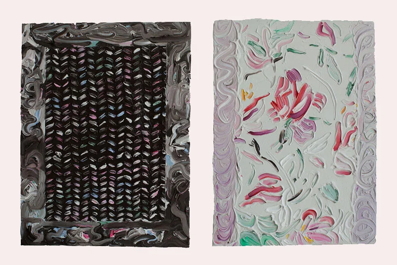 Like elaborate costume jewelry, the luxurious brushstrokes of her painted canvases burst with milky swipes in girly nail polish shades. However, despite their stately swirls, these pieces consciously lack the casual glamour of those born into money. Meanwhile, her digital prints appropriate architectural and design details from Miami Vice alongside such visual archetypes of South Beach excess as a hazy, rising sun seeping through the blinds. The resulting body of work effectively sets the scene for fun, money and, perhaps more subtly, the inevitable emotional wreckage caused by such nouveau riche tendencies. For, while exhilarating, the gaudy grandeur is really only a façade.